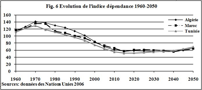 Cette situation particulière de l’histoire démographique des populations est appelée « fenêtre démographique » (période pendant laquelle il y a moins d’enfants et un faible nombre de personnes âgées à charge). Pour les pays du Maghreb, elle se profile pour les prochaines décennies ; sera-t-elle mise à judicieusement à profit par la mise en œuvre d’une politique de développement qui rentabiliserait cette « rente démographique » ? À qui profiterait prioritairement cette manne ? Les pays de la zone Nord de la Méditerranée en seront-ils les grands bénéficières ?