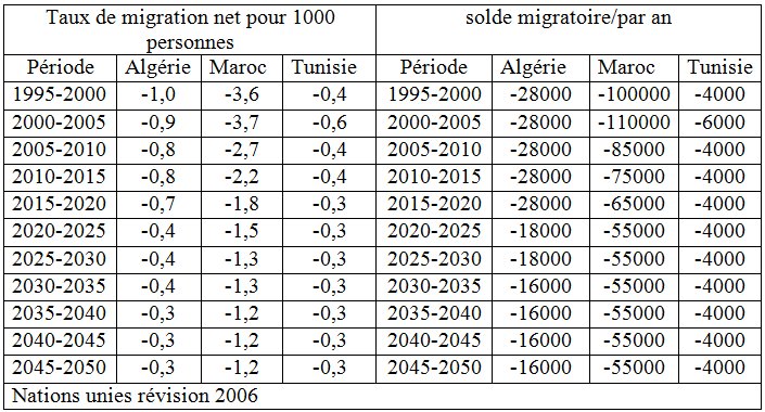 Par conséquent plus que par le passé, dans les deux prochaines décennies, le marché du travail des pays du Maghreb connaîtra un surplus de demandeurs d’emploi. L’équilibre sur le marché se fait non seulement en terme d’adéquation entre l’offre et la demande d’emploi, mais aussi de la qualité de ses offres et des opportunités de progression sociale qu’elles génèrent.. L’ensemble de ces éléments et les autres indicateurs économiques, politiques et sociaux conduisent à penser que les flux migratoires, au départ du Maghreb, persisteront dans les prochaines années. Or toutes les études montrent que les profils migratoires ont connu des modifications considérables au cours de la dernière décennie. Dans les flux migratoires les personnes ayant une qualification professionnelle et un niveau d’instruction élevé remplacent progressivement les ruraux et les personnes sans instruction des décennies précédentes. On est en droit de s’interroger si par ce processus ne se dessine pas un autre système de transfert de valeur des pays pauvres vers les pays riches.