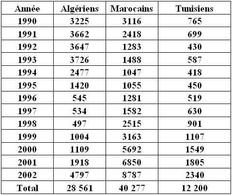 Tableau n°4 : Entrée des étudiants maghrébins en France