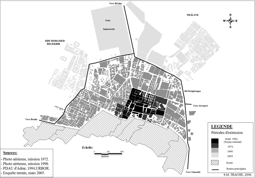 [12] Bendaba A., Les mutations spatiales et fonctionnelles au centre-ville d’Adrar, mémoire de géographie (en langue arabe), Oran, 2003, pp. 84-98.