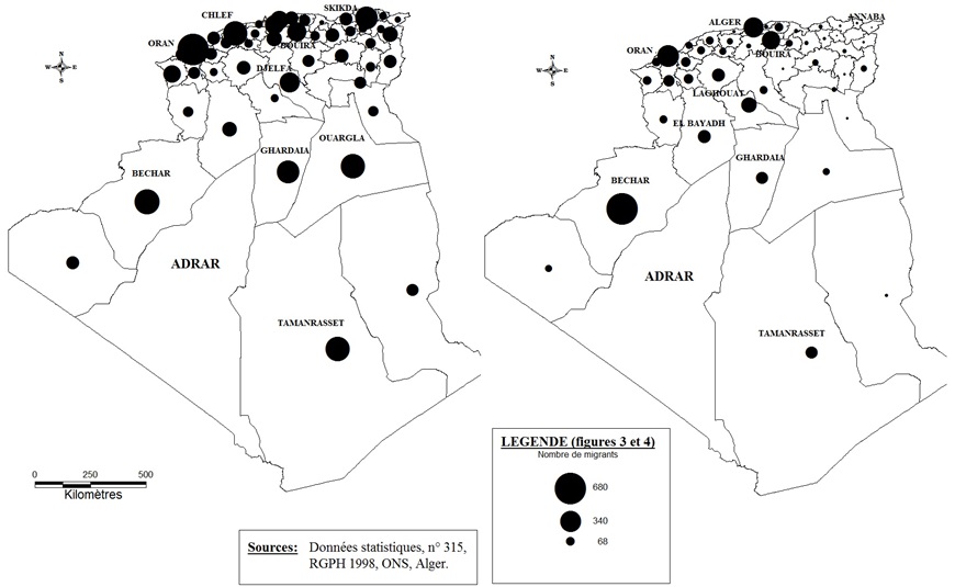 Sources : Données statistiques, n° 315 - Récap., histoire migratoire des wilayas, RGPH 1998, Office National des Statistiques, Alger.
