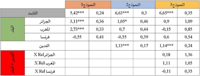 ختاما، بالنسبة للنموذج 3، تشير الجداول بشكل عام إلى غياب تأثير التفاعل بين بلد المنشأ والتدين لدى جميع المتغيرات باستثناء الدعارة حيث يلاحظ وجود تأثير تفاعلي لدى المبحوثين الجزائريين.