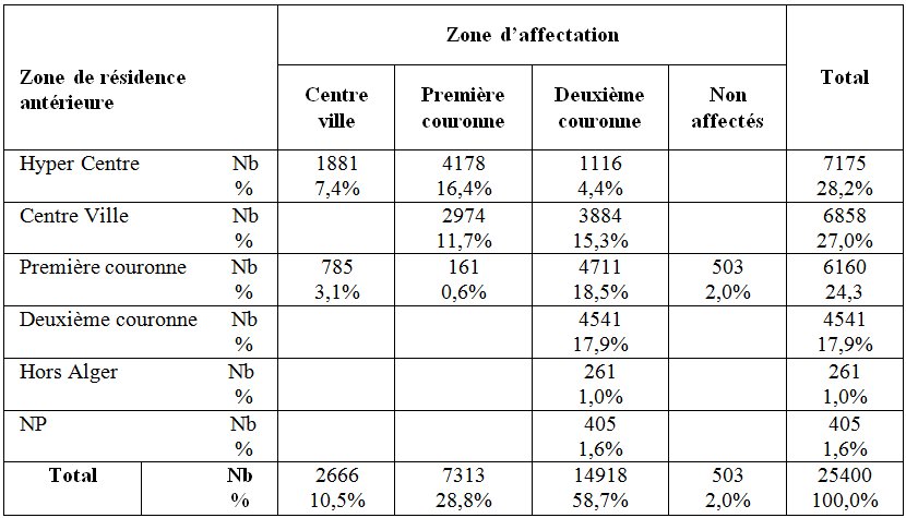 Tableau 8 : Affectation des souscripteurs au programme AADL selon leur zone de résidence antérieure