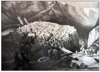 شكل 6: صخرة مدينة قسنطينة كما رسمت في القرن التاسع عشر