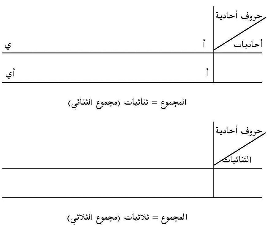 أما بالنسبة للجداول التي وضعناها وكيف تنتج منها الثنائيات والثلاثيات والرباعيات والخماسيات يمكن شرحها بمثال على الشكل الآثي :