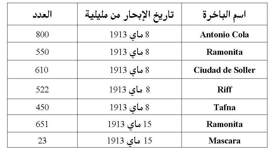 شكل 2: عدد المهاجرين حسب أصولهم القبلية من خلال ركاب باخرة (Ramonita) (15 ماي 1913)