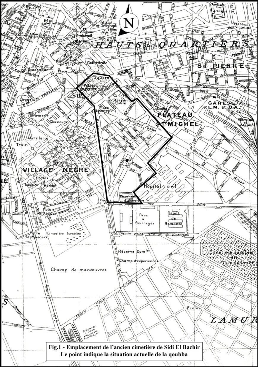 En 1886, le commandant Isidore Derrien signale la présence au Sud du Village nègre la présence du cimetière et de ses nombreuses qoubbas. Derrien comdt. I., Les Français à Oran depuis 1830 jusqu'à nos jours, Aix, 1886.