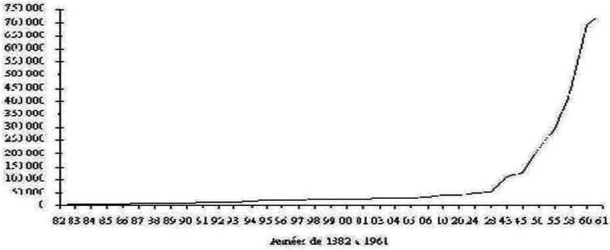 Figure 2 : Effectifs des élèves musulmans inscrits à l’école primaire en Algérie 1882 – 1961