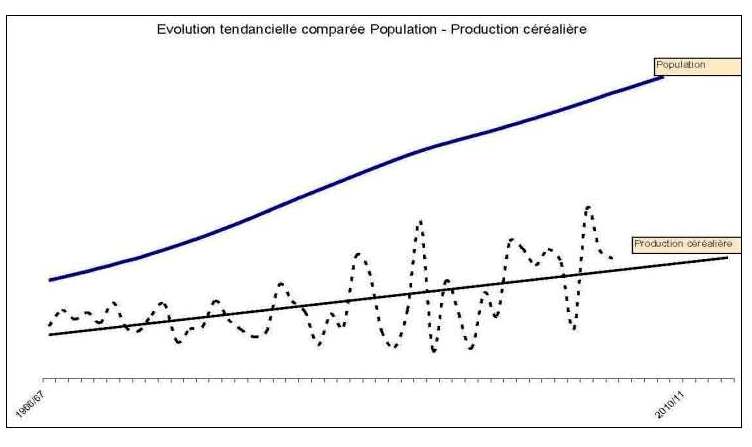Figure 4 : Évolution comparée des courbes d’accroissement démographique et de production céréalière
