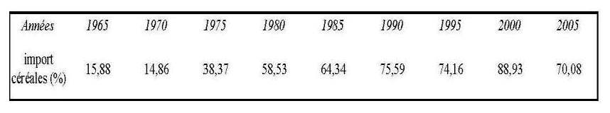 Tableau 2 : Évolution du taux de couverture en besoins céréaliers par l’importation en Algérie