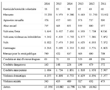 Cependant, de la même manière que les données officielles indiquent une plus grande présence de crimes avec un contenu violent parmi ceux commis par des jeunes, il est également nécessaire de préciser que, parmi les blessures (13.402-11.238), les vols avec violence et intimidation (7.852-4.342) et la violence domestique (5.377-4.355), le nombre de cas a diminué entre 2011 et 2016.