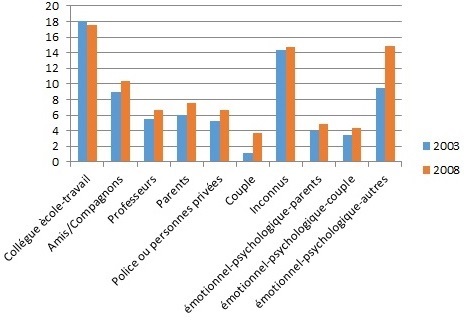 La première conclusion significative est que les différences de résultats entre les sondages de 2003 et 2008 sont plus importantes si le mineur se considère comme agresseur que comme victime. Dans ce cas, comme l'ont démontré d’autres recherches, la sensation majoritaire parmi les jeunes de 16 ans était celle d'avoir subi moins d'agressions physiques ou de menaces (García, Díez et Pérez, 2010)