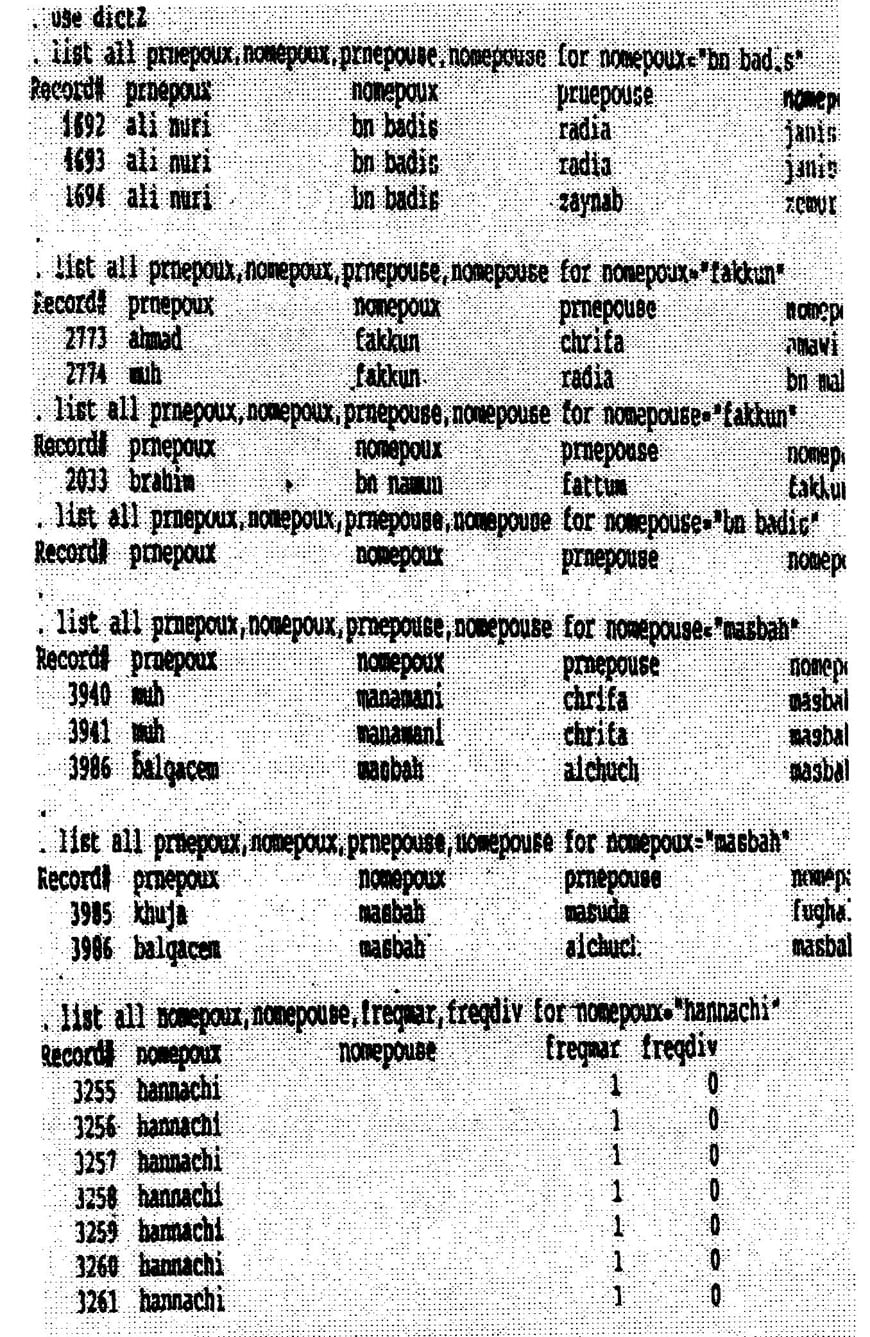 و إذا كانت هذه النتائج مهمة جدا إذ تزعزع الرأي السائد حول التسمية باللقب العائلي و القائل بتكريس الإدارة الاستعمارية له عندما فرضت سجلات الحالة المدنية، فهي تفيدنا في التعامل مع الأزواج بأكثر ثقة في حالة الاسم الثلاثي، و اعتمدنا بدرجة أقل على الاسم الثنائي لما فيه من خطر الخلط بين الأشخاص بسبب كثافة بعض الأسماء. و قد سجلنا مثلا عشرين عقدا بين زواج وطلاق للمدعوة "فاطمة بنت علي" و لم نسجل مثلا هذا الرقم في اسم ثلاثي؛ مما يدل على أنه اسم واحد لأكثر من امرأة...