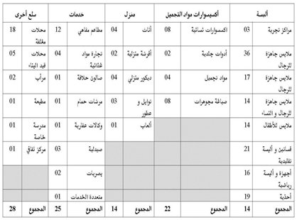 الجدول 5: توزيع محلات السلع النسائية أو التي تتردد عليها النساء