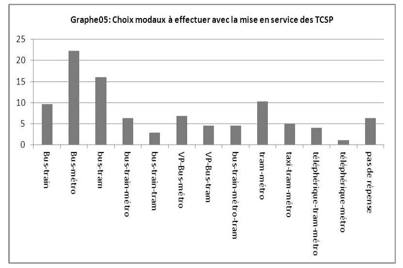 Et à partir du moment où le téléphérique ne sera intégré spatialement au métro et au tramway que dans le pôle d’échanges des Fusillés, uniquement 5% des déplacements de l’effectif interviewé seront pris en charge par ce moyen. Ce qui permettra des échanges aisé sans la pénibilité des ruptures de charges dont les usagers souffrent en général dés qu’il est question d’un usage simultané de deux ou plusieurs modes de transport.