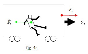 - Cette force  est appelée force d’inertie relativement au fait que la personne étant dans un état d’inertie avant l’accélération aura tendance à rester dans cet état. C’est donc une force fictive (tout se passe comme si) liée à une certaine résistance au changement de l’état de mouvement. (fig. 4.a)