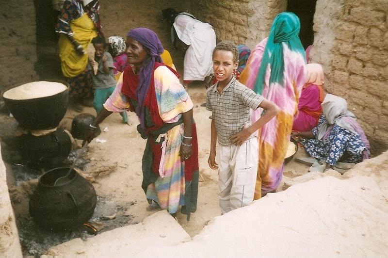 Photo 2 : Préparation du repas d’offrande lors de la sadaqa (a) takuté(t) lors de la ziara de Tazrouk par les femmes Izzegharen (cultivateurs), Août 1998