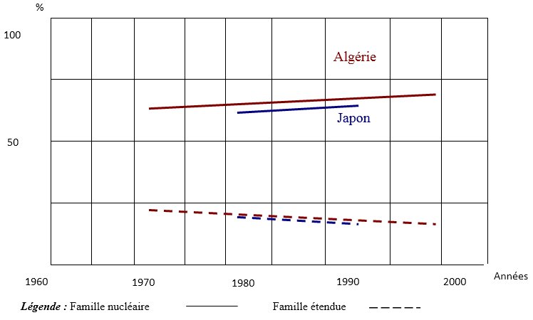 Figure n° 1 : Evolution des types de familles au Japon et en Algérie (%)