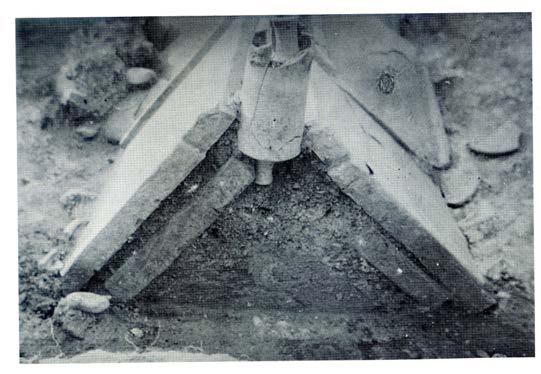 Les tombes sous tuiles : le corps est déposé sous des rangées de tuiles inclinées. Un canal de libation en tegula se dresse telle une cheminée, cet exemple est attesté à Sitifis.