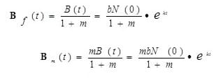 7-  إذ كان m هي قيمة فرضية ثابتة تعبر عن النسبة بين الذكور و الإناث فإن تعداد مواليد الإناث Bf (t) و تعداد مواليد الذكور Bm (t) يكون كالتالي :