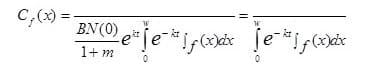 حيث ∫m(x) هو توزيع  أو دالة  البقاء على قيد الحياة إلى غاية العمر x. و هي كدالة تمثل قيمة ثابتة.
