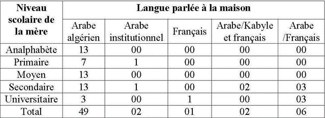 Tableau 2 : Niveau scolaire de la mère / Langue parlée à la maison
