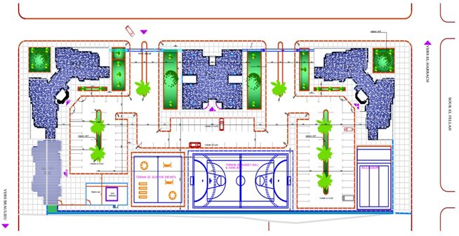 Le jardin est conçu de telle manière à inclure l’aspect esthétique qui préserve l’image de la cité, et les thèmes de cultures qui puissent intéresser les citadins (ornement, aromatique, légumes et arbres fruitiers).