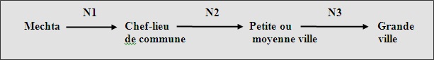 Il s’agit d’une hiérarchie territoriale qui correspond à un schéma de mobilité très courant, qui tient compte de la fonction de commandement et d’organisation des agglomérations suivant leur taille démographique et marchande. Bien entendu, il arrive que les citoyens se déplacent directement de la mechta à la petite ville sans passer par le chef-lieu. Certains citoyens rejoignent par exemple directement la route pour prendre un transport public, cela étant plus commode et représentant un gain de temps et de distance. Cependant, la hiérarchie retenue est très souvent opérationnelle et correspond à une réalité du terrain très forte.
