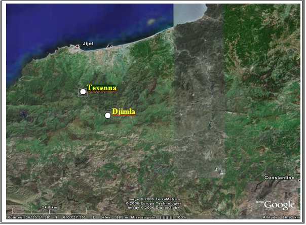 Pour mieux appréhender les mécanismes de la mobilité rurale, une enquête a été menée dans deux communes de montagne, Texenna et Djimla dans la wilaya de Jijel (voir localisation des terrains d’enquête en fin de texte). Le travail de prospection et de préparation effectué sur le terrain, compte tenu du poids démographique de chaque commune a permis de déterminer un échantillon de 5 % de la population mobile.