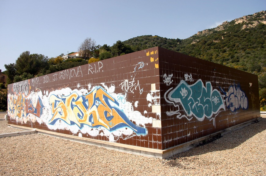 Je retourne sur le site plusieurs fois jusqu’en 2013. C’est au cours de cette période qu’un autre article sur le Scudo paraît sur un blog. L’endroit est présenté comme « temple insolite d’une émulation artistique tournant autour des tags et des graffiti » (Battini, 2012). C’est suite à la lecture de l’article de mars 2016 que je décide de m’y rendre de nouveau. Je constate des changements. Des fresques de plusieurs mètres carrés qui avaient été sélectionnées pour figurer dans le Corse Matin en 2010 ont été intégralement recouvertes par d’autres fresques. Des murs de briques ont été cassés. Avec du ciment, des structures permettant des sauts de skate board ont été construites. Des pièces signées portent le nom de la ville de Toulouse. Il s’agit sans doute de l’origine de tagueurs  comme Sike et Reso qui 15 ans auparavant venaient eux aussi de la « ville rose ».