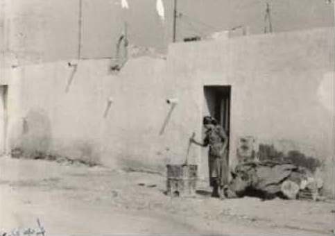 Fig. 4 : Quartier Essalah en 1979 : une femme préparant, dans la rue, le pain tabouna[1]