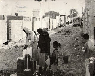 Fig. 5 : Quartier Essalah en 1979 : Des femmes qui s’approvisionnaient de l’eau potable d’une borne fontaine commune installée à l’extrémité d’une rue.