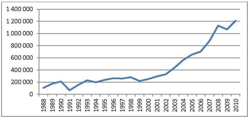 En effet, en 1974, ces établissements fonctionnaient avec seulement 883 millions de DA. Les budgets alloués à ces établissements iront crescendo pour se situer à plus de 6 milliards DA, en 1985.Vingt ans après l’instauration du forfait hospitalier, le budget consacré aux établissements publics de santé passe à plus de 30 milliards DA (en 1994). Actuellement, ces établissements reçoivent plus de 400 milliards DA (voir le graphique n° 03).