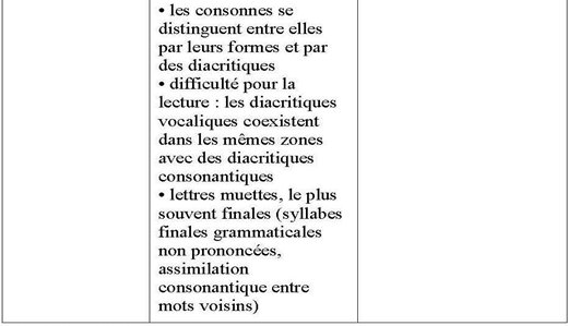 Tableau I : Systèmes graphiques de l’arabe et du français et leurs difficultés de traitement