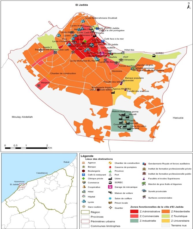 Face à la contrainte relative au manque de données complètes et homogènes concernant les flux de mobilité quotidienne au sein des espaces urbains et périurbains marocains, l’étude du cas de l’agglomération d’El Jadida peut apporter une observation généralisable sur l’ensemble des villes marocaines.