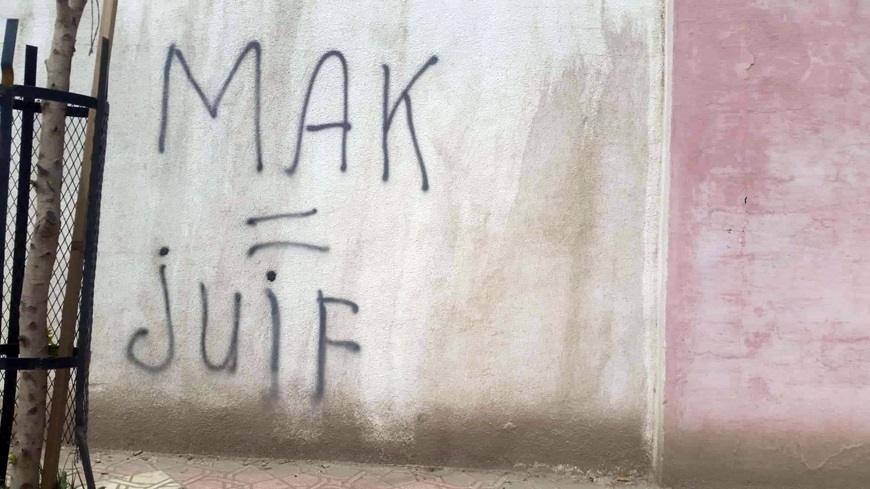 Les réactions aux discours, actions et attitudes des dirigeants et militants du MAK se lisent aussi sur des graffiti qui s’opposent au projet politique de ce mouvement. Affichant son antisémitisme, l’auteur du graffiti de la figure 7[MAK= JUIF] qualifie les makistes de Juifs. Qualificatif que l’on retrouve dans le discours de quelques informateurs qui pensent que le MAK entretient des relations avec L’Etat hébreu et ce, depuis le voyage effectué par le président du « Gouvernement Provisoire Kabyle » autoproclamé, en Israël, en 2012.