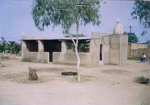 Le premier type est un tracé au sol à différentes figures: rectangulaire, carré ou rond, entouré de pierres ou de briques. Il a une niche à l’est qui indique la qibla, (la direction de la Mecque) et une entrée à l’ouest (voir image I). Ce type de mosquée se trouve souvent devant les concessions, là où les musulmans sont de passage comme les marchés, les gares routières, ou dans des localités où les musulmans sont réduits à quelques personnes ou familles, ou s’ils sont nombreux mais n’ont pas de moyens pour bâtir une mosquée. L’incendie du Grand Marché de Ouagadougou en 2003 a augmenté le nombre de ces types de mosquée à Ouagadougou. Après ce drame, les commerçants se sont dispersés dans la ville. Et dans chaque nouvel emplacement, les commerçants musulmans réservent toujours une place pour la prière. Cette simplicité a fait que ce type de mosquée est répandu à Ouagadougou. Dans les villages rattachés administrativement à Ouagadougou, ces types de mosquée se trouvent devant la plupart des concessions des musulmans, car une autorisation n’est pas exigée pour cela elle n’est pas chère à réaliser, et ce d’autant plus, que la mosquée est destinée à la famille. Son emplacement devant les foyers signifie la présence d’un musulman dans la cour. Elle permet à tout musulman, de passage, de s’arrêter et de faire sa prière. Nous considérons, à partir des ces données, que ces mosquées sont des lieux de culte de circonstance et temporaires (voir image 1).