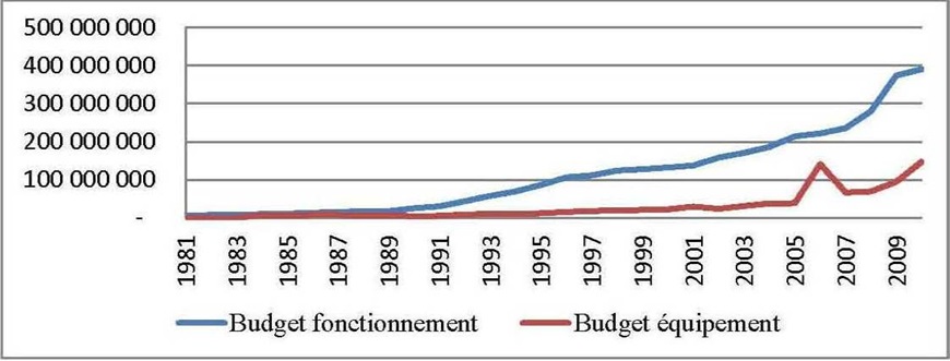 Notons qu’à partir de 2006, l’enseignement supérieur devenait une priorité de la politique d’éducation. À cette date, plus de la moitié du budget d’équipement a été consacrée à l’enseignement supérieur, contre un quart en 2000. La proportion des dépenses de fonctionnement du supérieur a également progressé pour représenter environ un quart du total des dépenses de fonctionnement du secteur de l’éducation. À partir de cette date, les dépenses de l’éducation nationale sont devenues conséquentes et ont occupé une des places prioritaires du budget de l’État.