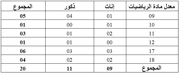 1. في الأخير، يقوم التلميذ بإعادة صياغة ما قام به عمليا على شكل جدول (يسمى بجدول التكرارات)