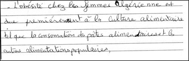 C’est dans ce contexte que nous avons invité nos étudiants à écrire un texte au niveau duquel ils expliquent ce qu’est l’obésité et verbalisent toutes les informations dont ils disposent sur ce sujet.