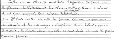 Après la présentation de l’obésité, de ses causes et conséquences ainsi que du poids des représentations socioculturelles, ces mêmes étudiants explicitent leur point de vue sous la forme d’une réflexion critique des représentations socioculturelles. Ce qui est intéressant au niveau de ces passages, c’est le conflit entre les données apportées par les compétences littératiques et le poids des représentations socioculturelles. Cette attitude réflexive et critique est présente au niveau de tous les participants quel que soit leur genre.