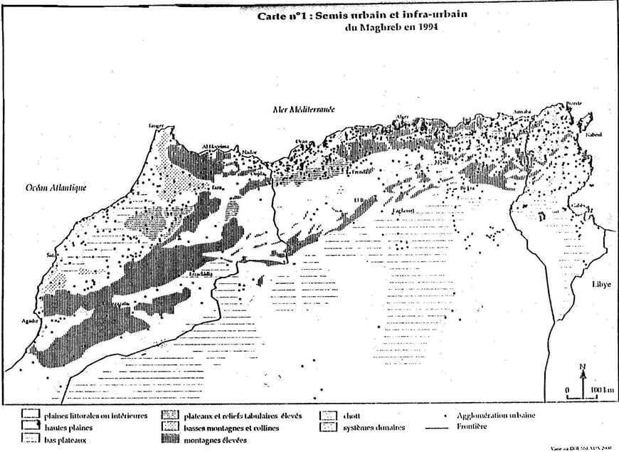 Les Etats du Maghreb nord (Maroc, Algérie et Tunisie) ont une tradition citadine ancienne, mais, jusqu’à leur indépendance, nulle période n’avait connu de bouleversements aussi spectaculaires, aussi rapides et aussi visibles, que ceux apporté par l’urbanisation au cours des dernières décennies. C’est pourquoi, nous nous intéresserons tout particulièrement à la situation actuelle de la répartition spatiale du fait urbain.