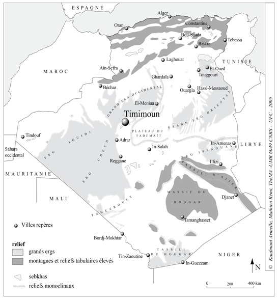[9] Kouzmine Yaël, Fontaine Jacques, Otmane Tayeb, Yousfi Badreddine, « Étapes de la structuration d'un désert : l'espace saharien algérien entre convoitises économiques, projets politiques et aménagement du territoire », in Annales de Géographie, Paris, n°670, 2009, pp. 659-685.