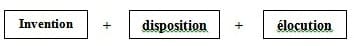 Dans l'ordre indiqué, l'invention correspond au sujet, la disposition à son organisation, et l'élocution à son expression, alors que le texte maghrébin bouscule les données du discours aristotélicien, pour proposer ceci :