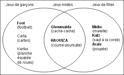 «Hchouma» et «Aîb» (honteux, ne se fait pas parce que mal vu) sont les éléments constitutifs de la matrice explicative du recours dominant aux jeux de groupe non mixte. Valeurs prises dans la norme sociale et auxquelles pour certains est rajouté «la yajouz» (illicite), une référence liée au dogme religieux.