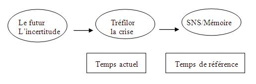 • من الأزمة هي التي أسهمت في بروز فعل الذاكرة، التي ربطت صورة الحاضر و استشرفت المستقبل و رجعت إلى الماضي[1]. لقد لعبت الأزمة التي مرت بها المؤسسة دورا في إنتاج صورة Mémoire SNS/ و كان لزاما دراسة مايلي: - تمثلات الذاكرة حول فترة الأزمة، و تقديم تمثلات العمال الناجين من عمليتيي التسريح (لا يمكن تقديم هذا الجزء لأن ذلك يؤدي إلى تجاوز عدد الصفحات المسموح بها)، ثم تقديم أليات تحول الذاكرة الجماعية لعمال المؤسسة إلى أسطورة بانية للمخيال العمالي.
