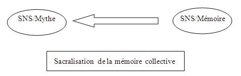• إن العناصر الثلاثة السابقة عندما تحالفت مع عنصر "تقديم النظرة المثالية المقترنة بالتقديس حول الفترة السابقة" حولت SNS/ Mémoire إلىSNS/ Mythe. الصورة الأسطورية حول السنواتSNS و هي صورة تعتمد على الذاكرة باعتبارها بعدا تأسيسيا، و تتخذ لذلك مجموعة من المواضيع (الورشتان المغلوقتان، التضامن العمالي، و الدور الصناعي للـ SNS).