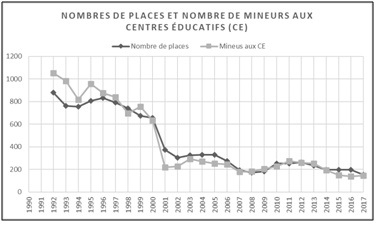 Figure 4 : Nombres de places disponibles et nombre de mineurs placés en centres éducatifs (CE)