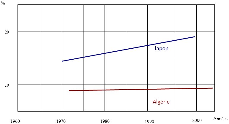 [6] Pour le Japon : Statistics Bureau, MIC, Ministry of Health, Labour and Welfare. Pour l’Algérie : ONS (2005), Retrospective Statistique 1970-2002, Alger.