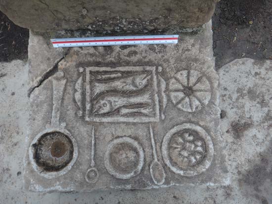 - Les mensae : elles exhibent la teneur des rites funéraires relatifs aux banquets dédiés à la mémoire du défunt. Il s’agit en fait de la représentation d’une table sur laquelle figurent des ustensiles (plats, patères…) et des offrandes d’un repas (poissons, pain…).